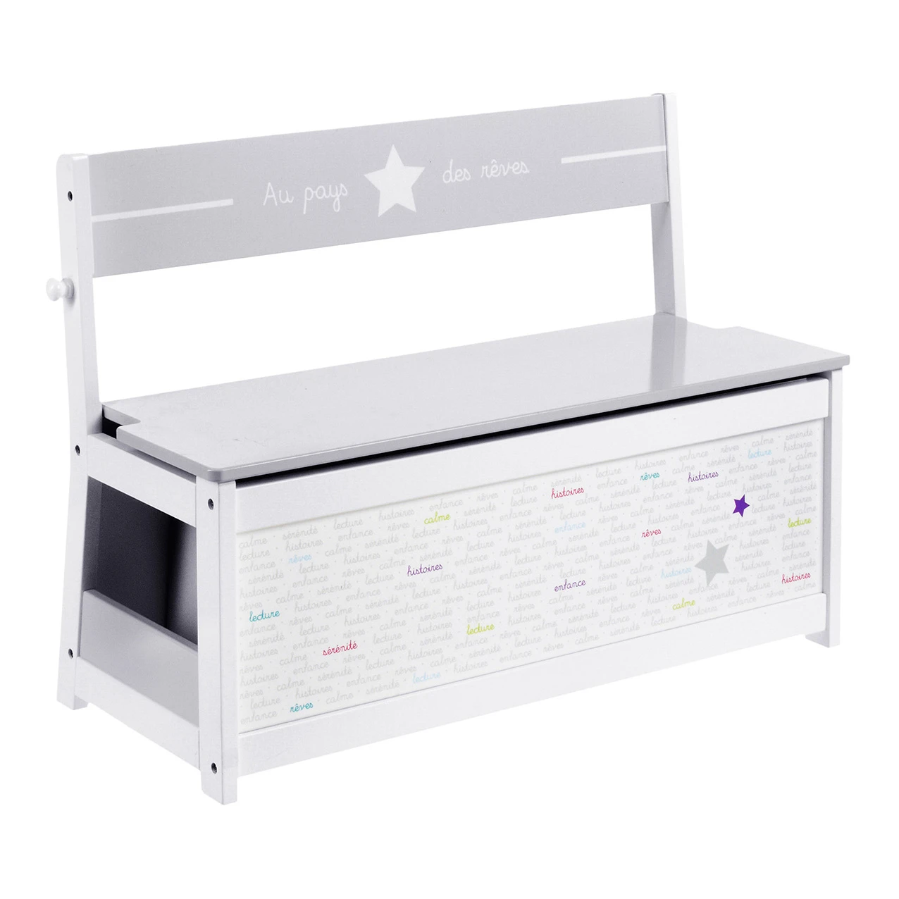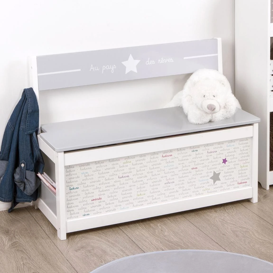 À la fois coffre de rangement et banc, ce coffre à jouets deviendra vite indispensable dans la chambre ou la salle de jeux !