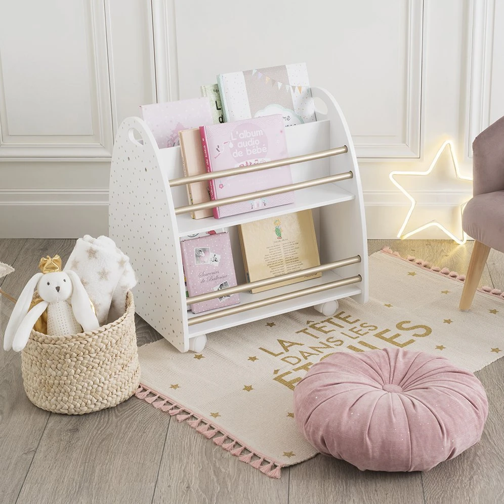 Cette bibliothèque en bois dispose d’un large espace de rangement. Pratique, elle possède des étagères aussi bien au recto qu’au verso.