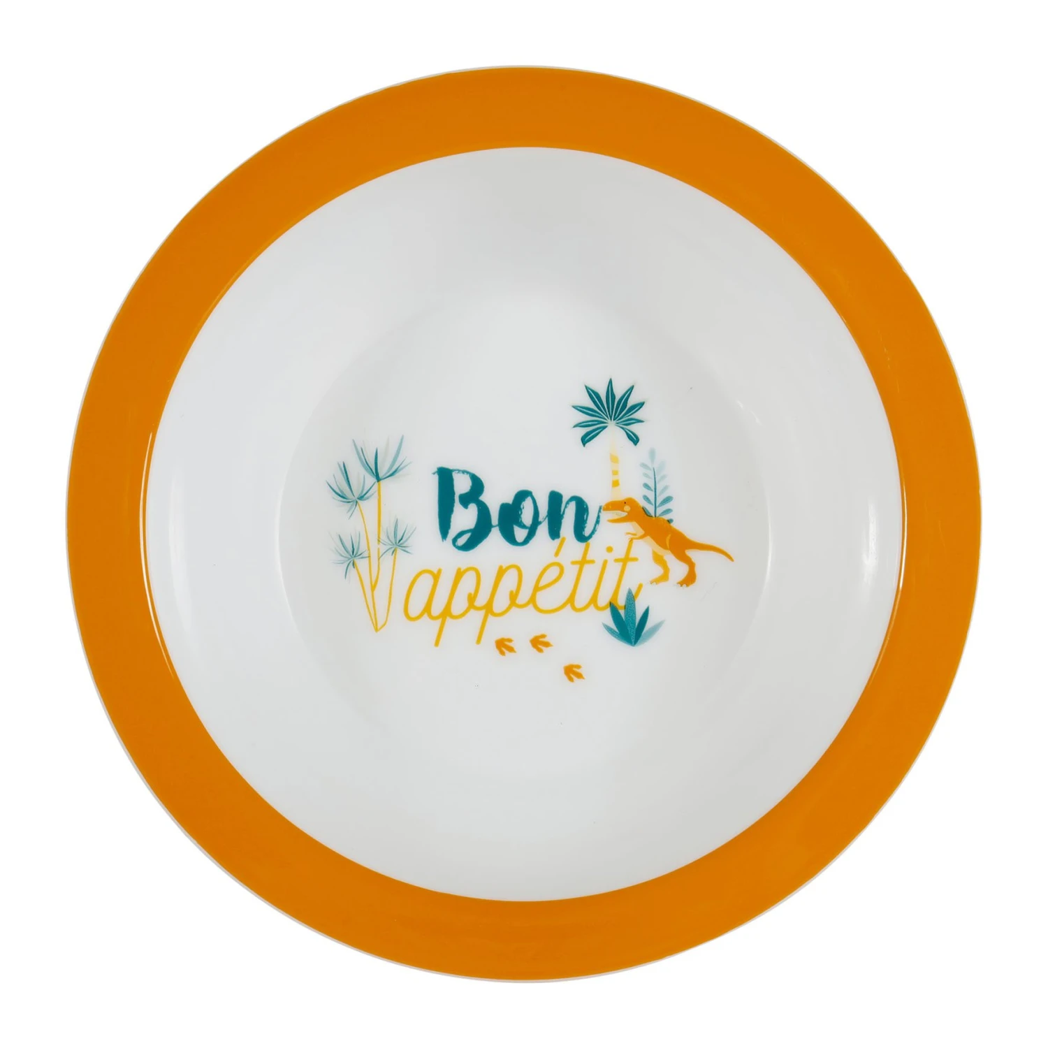 Ce coffret contient 1 assiette plate, 1 assiette creuse, 1 verre, 1 fourchette et 1 cuillère.