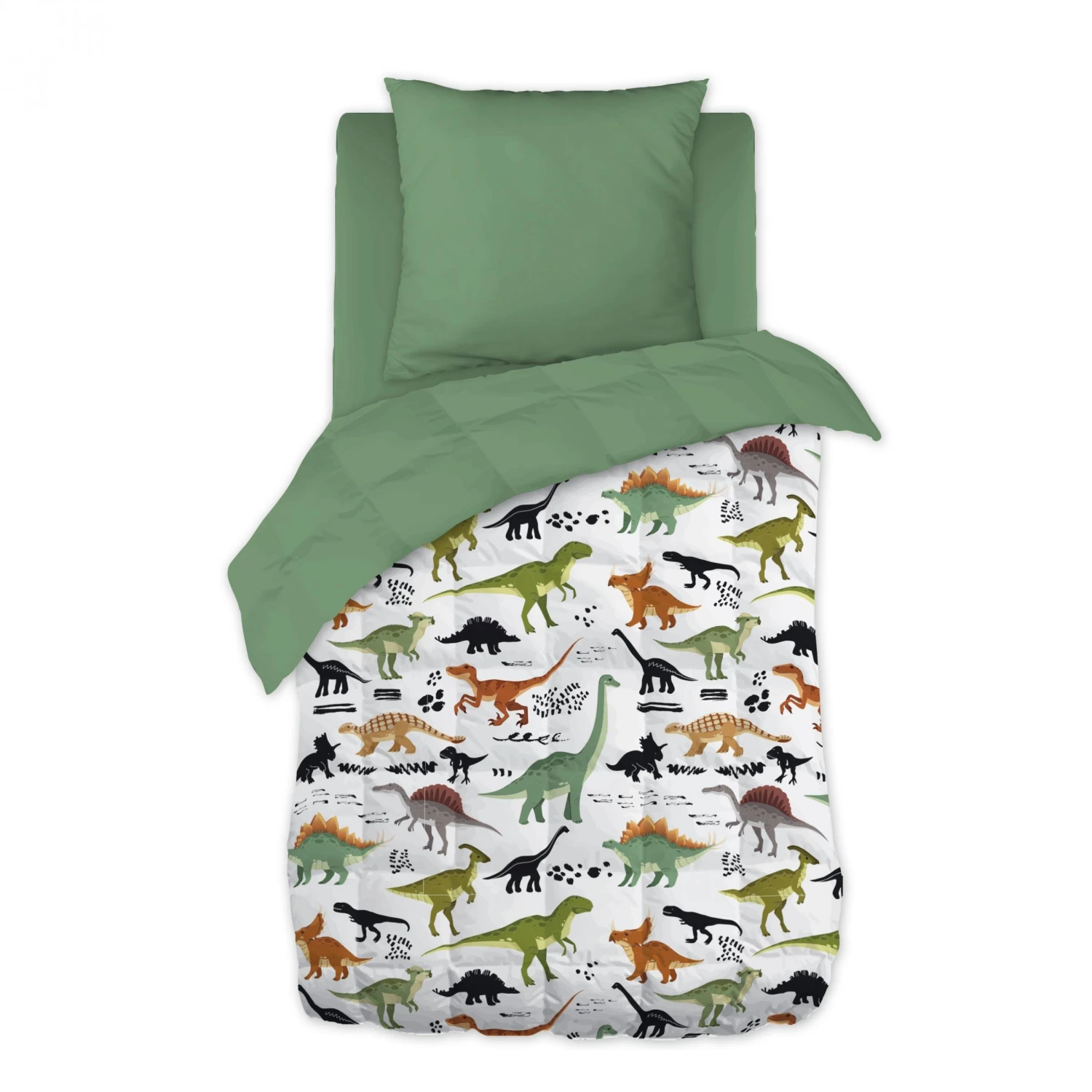 Imprimé : couette à motifs dinosaures, au recto et unie au verso.