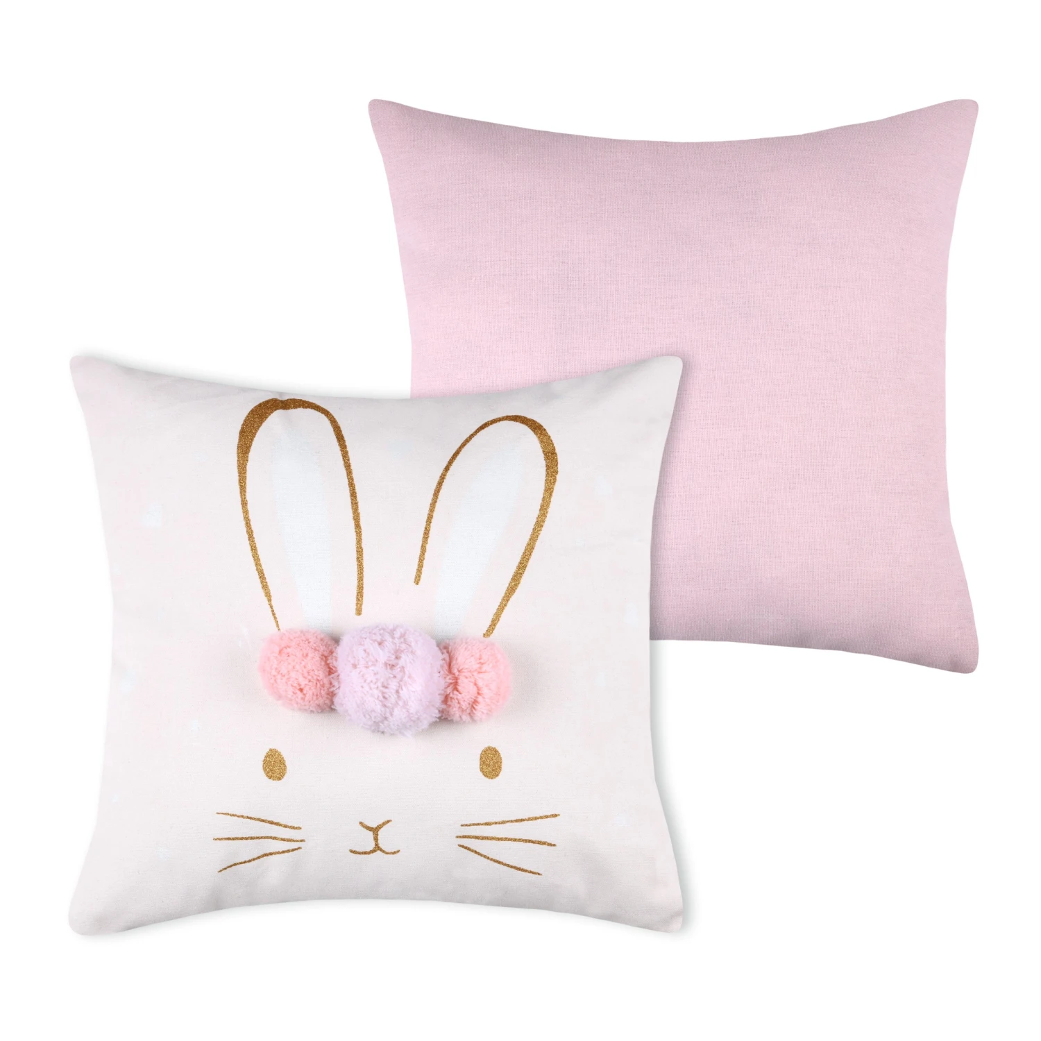 Imprimé : coussin à motif lapin au recto et uni au verso.