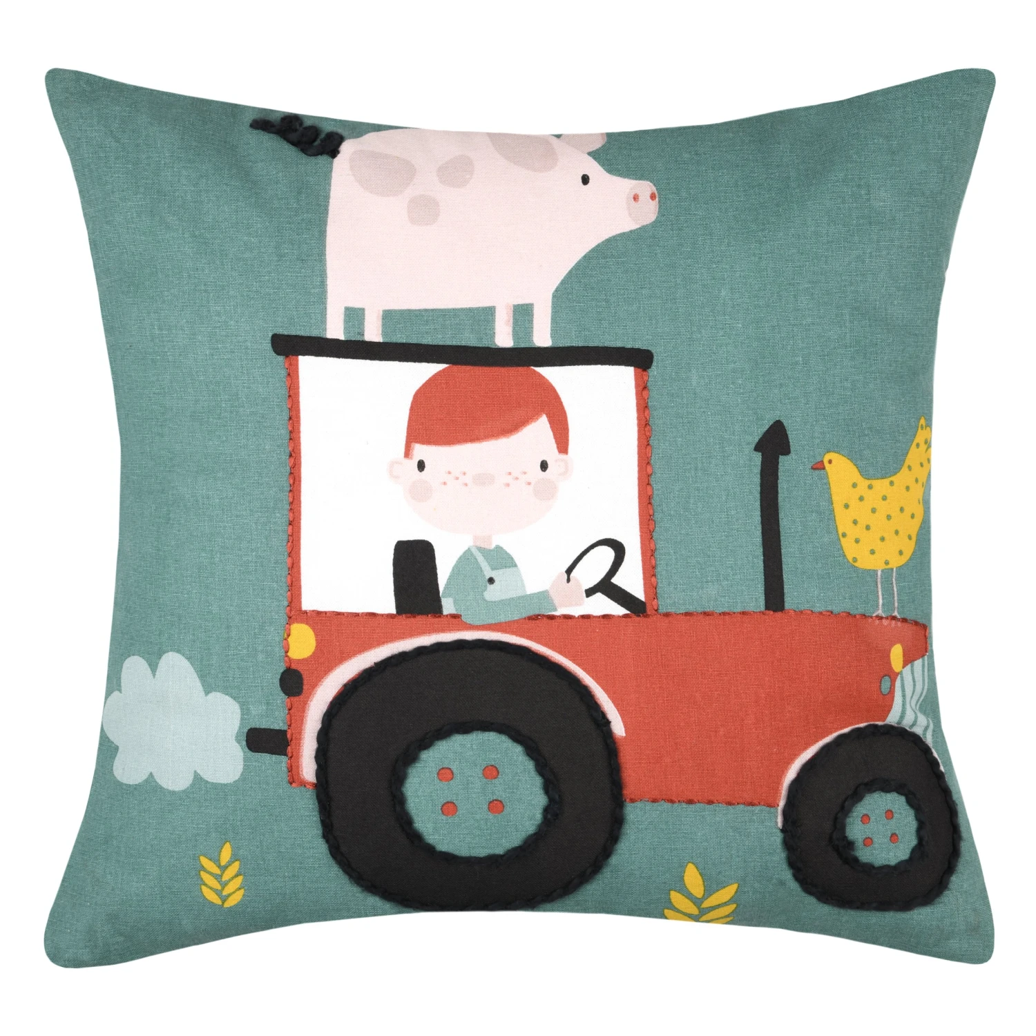 La ferme s’invite dans la chambre de votre enfant avec ce coussin coloré et fun.