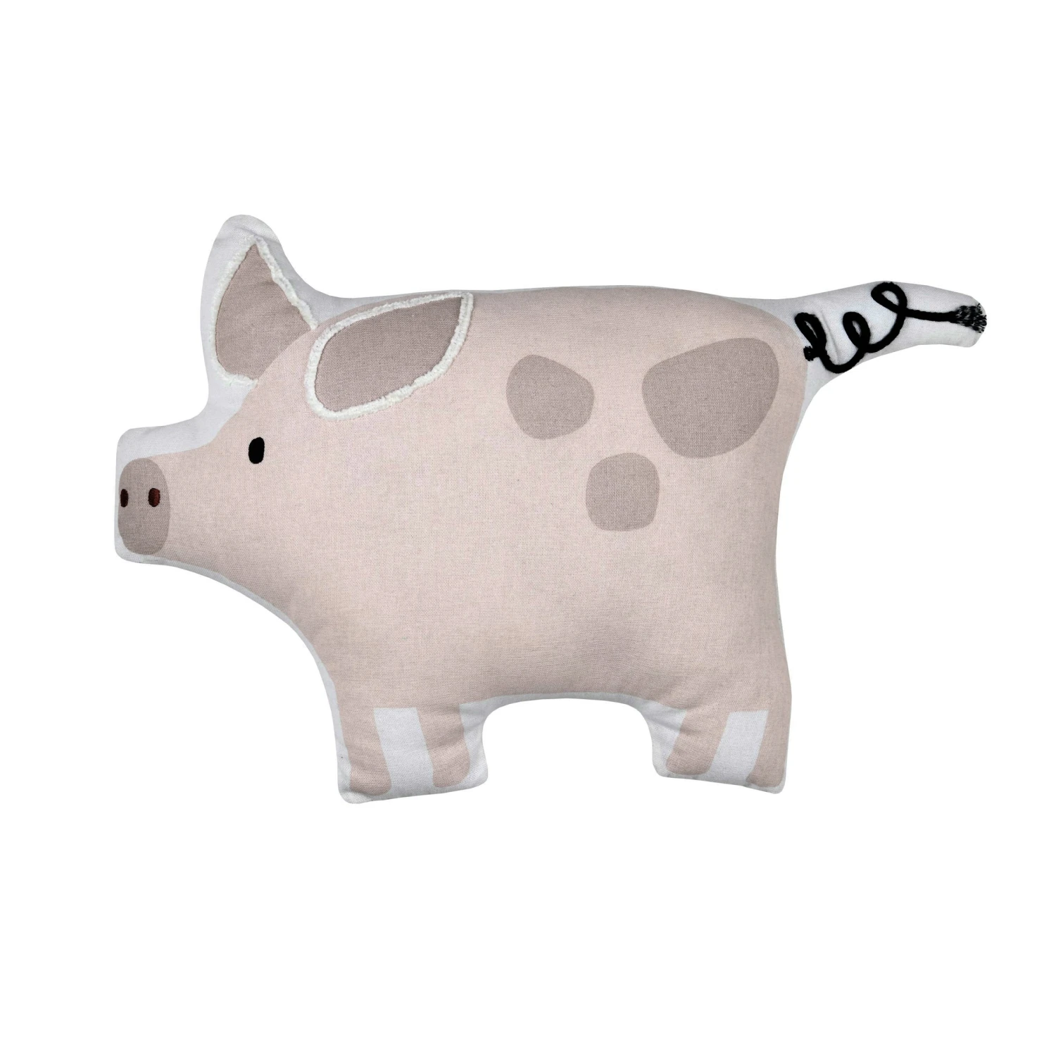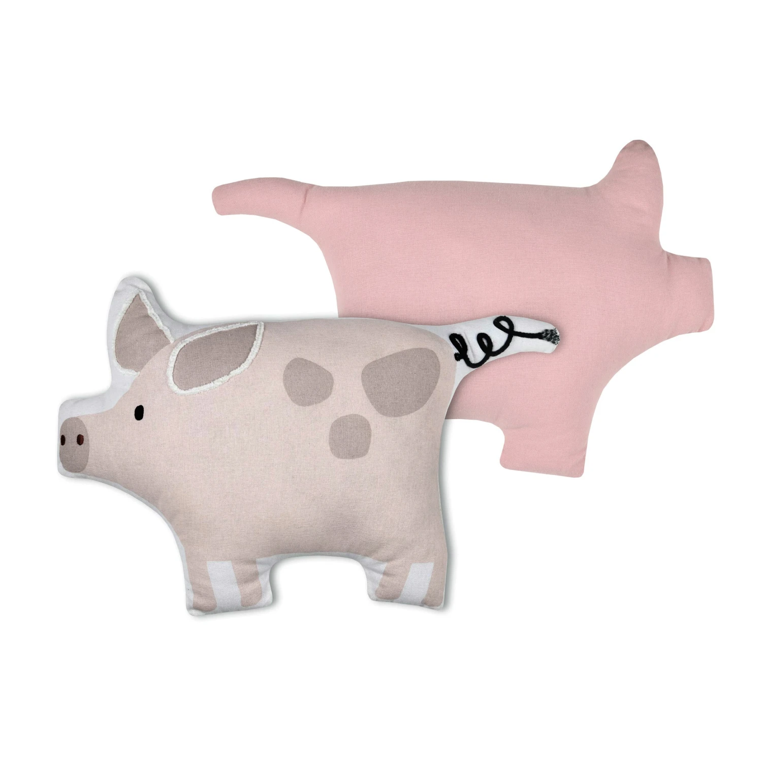 Imprimé : coussin en forme de cochon à motif recto et uni au verso.
