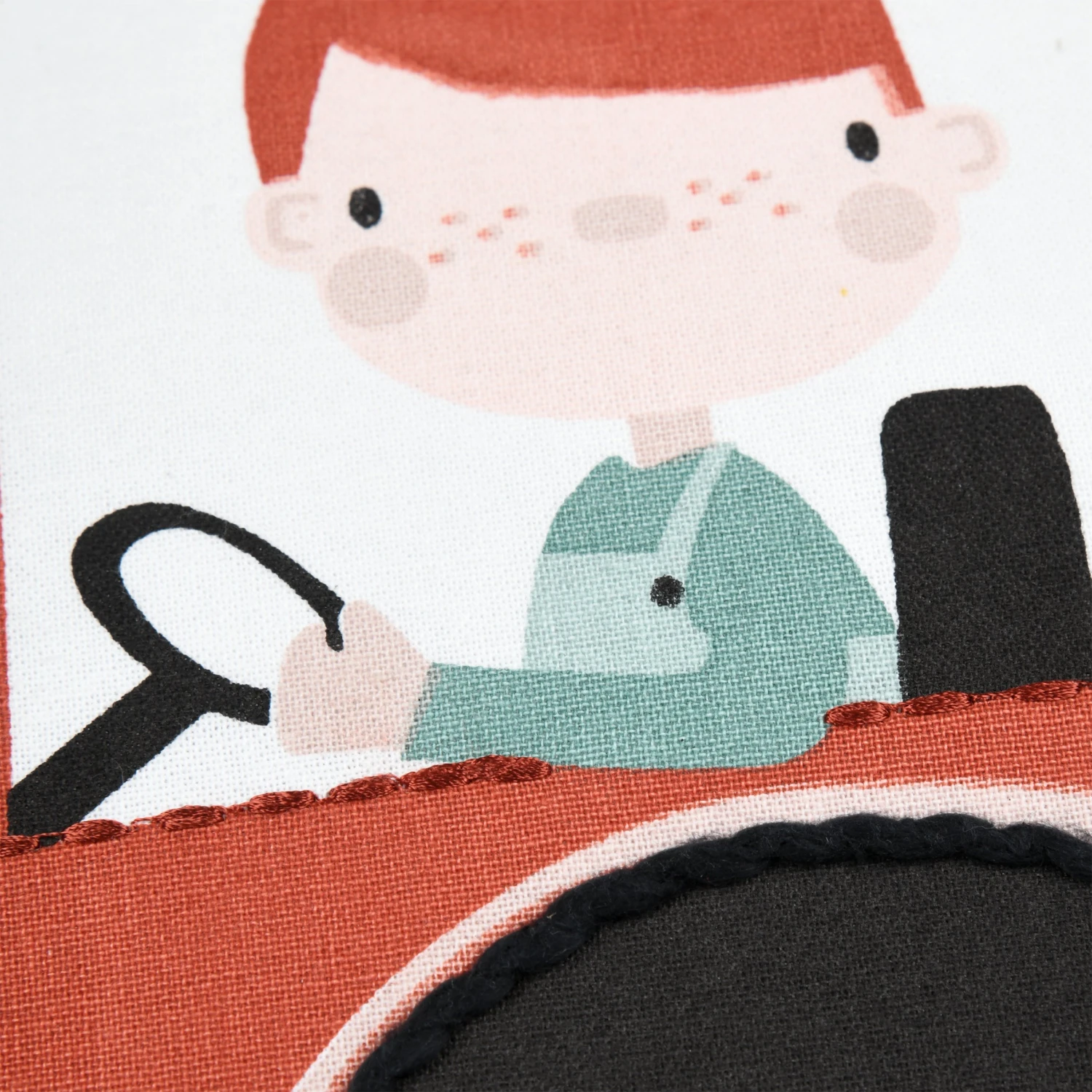 Imprimé : coussin à motif tracteur au recto et uni au verso.