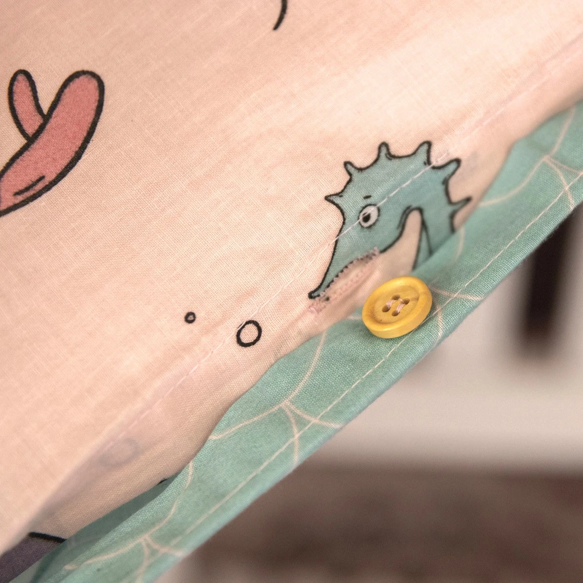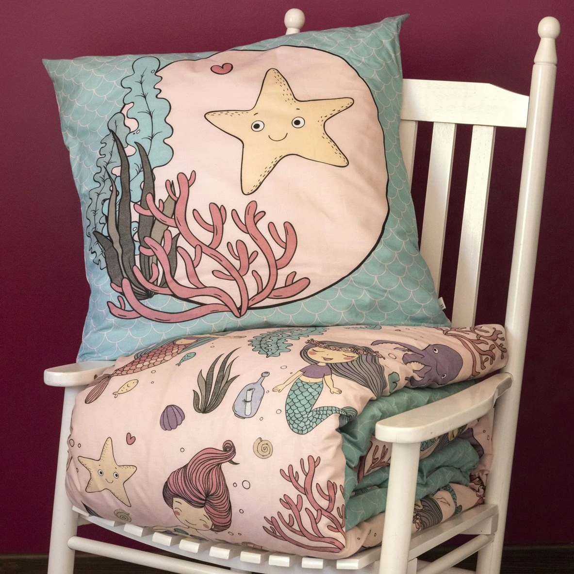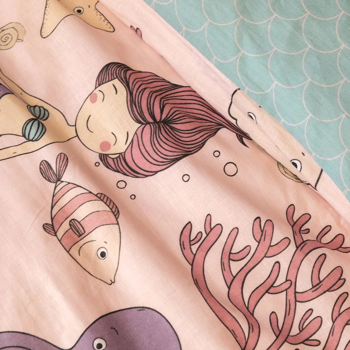 Imprimé : housse de couette à motifs sirènes et animaux marins.