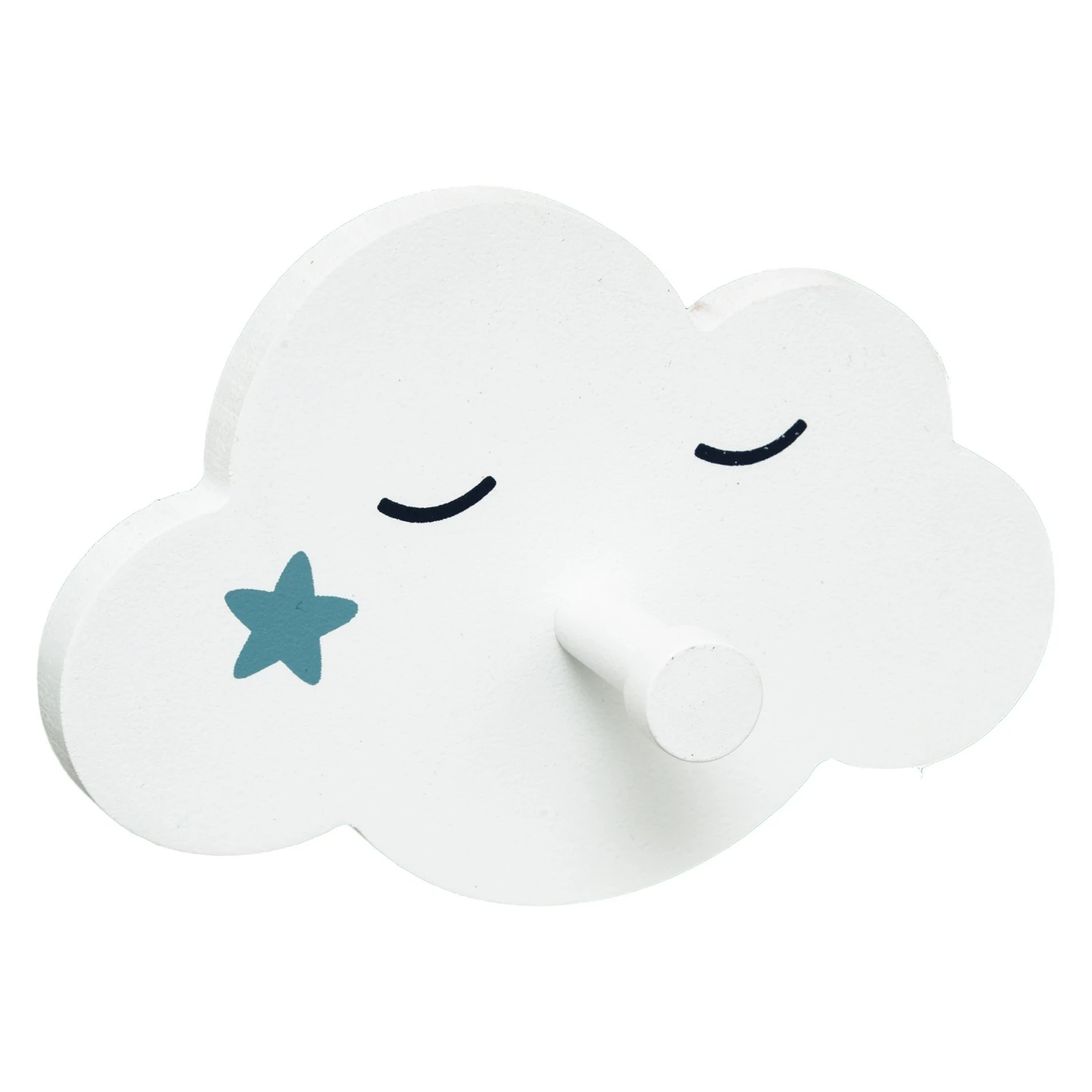 Imprimé : patères en forme de nuage, de lune et d’étoile.
