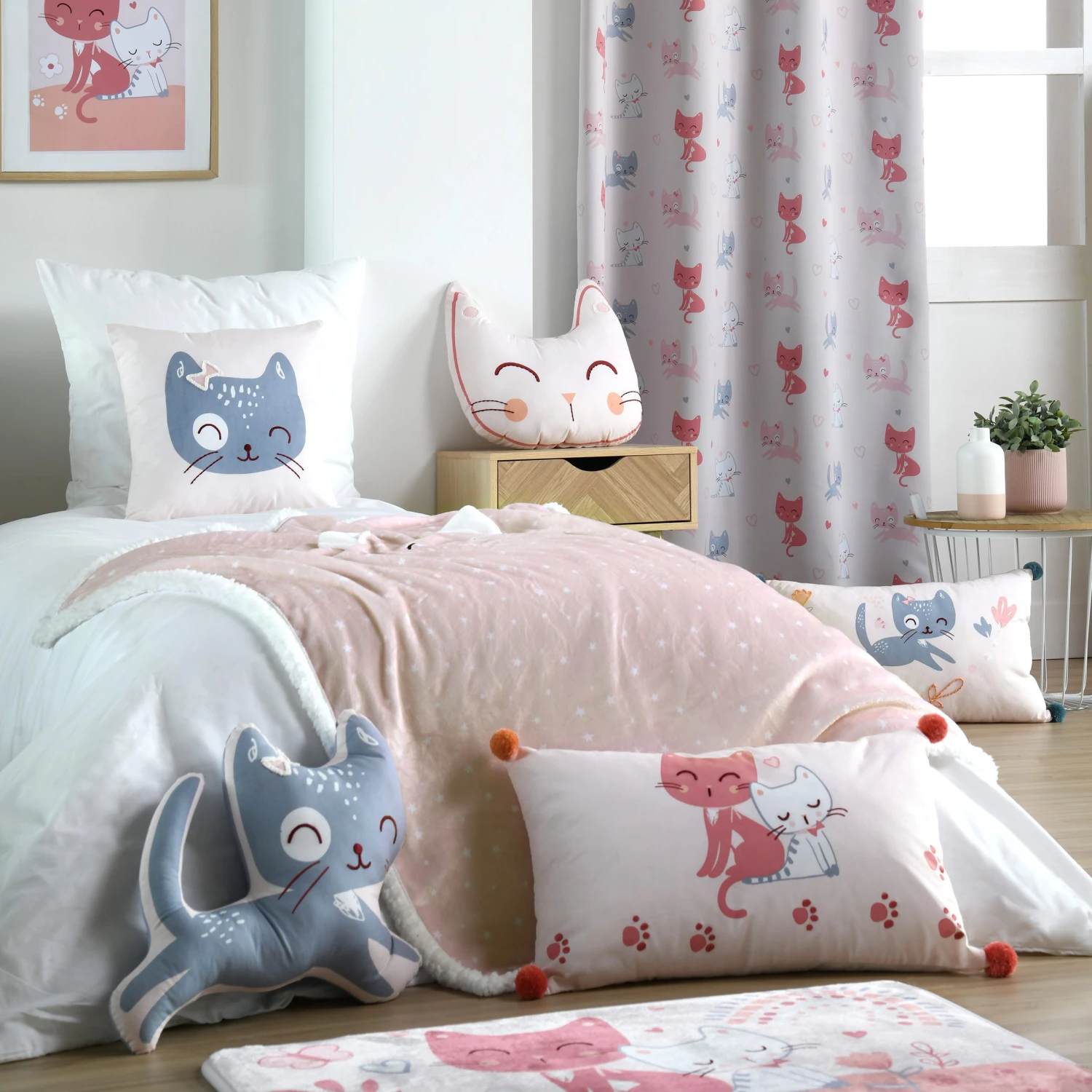 Imprimé : plaid à motif chaton.