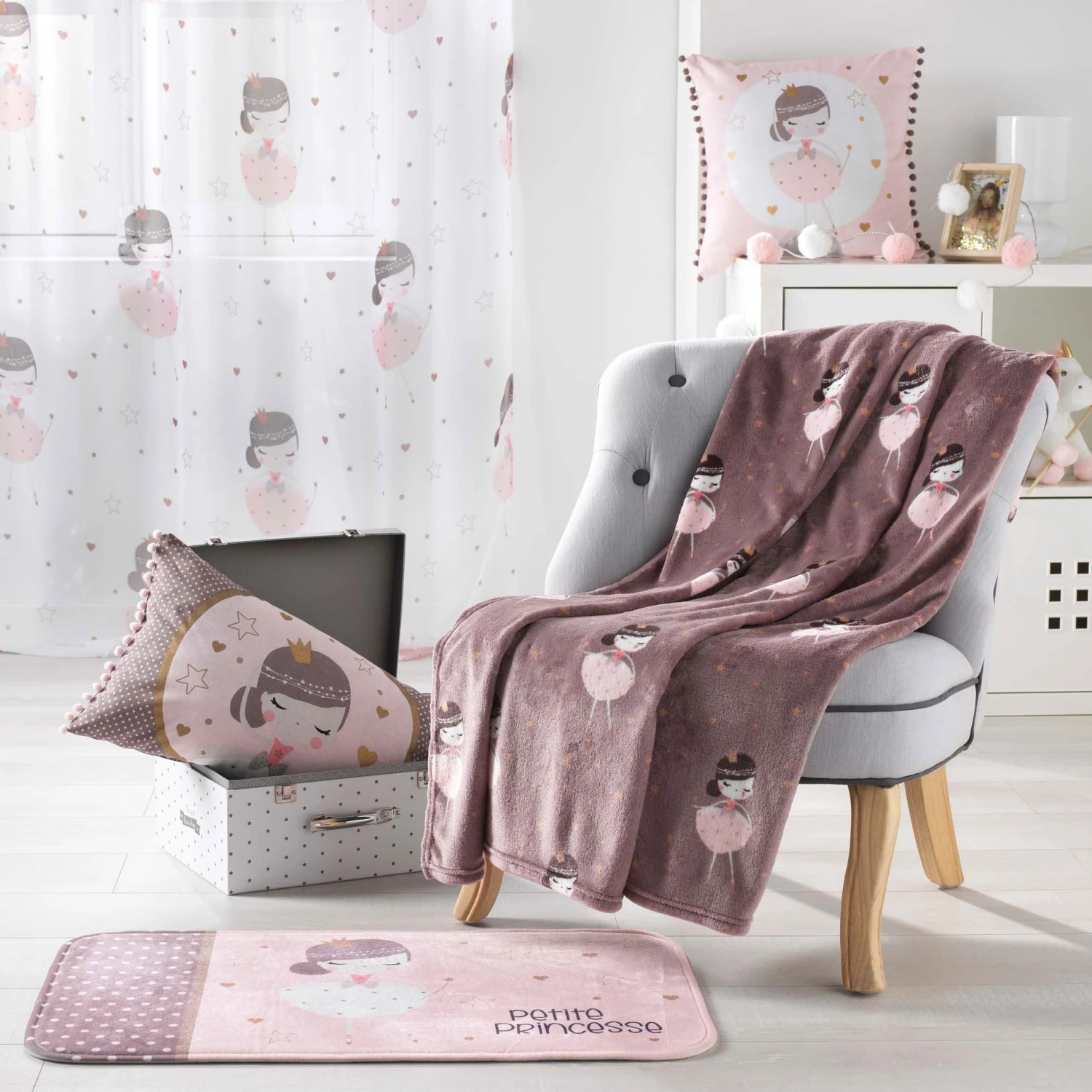 Imprimé : plaid à motifs princesses. Motif recto et uni au verso