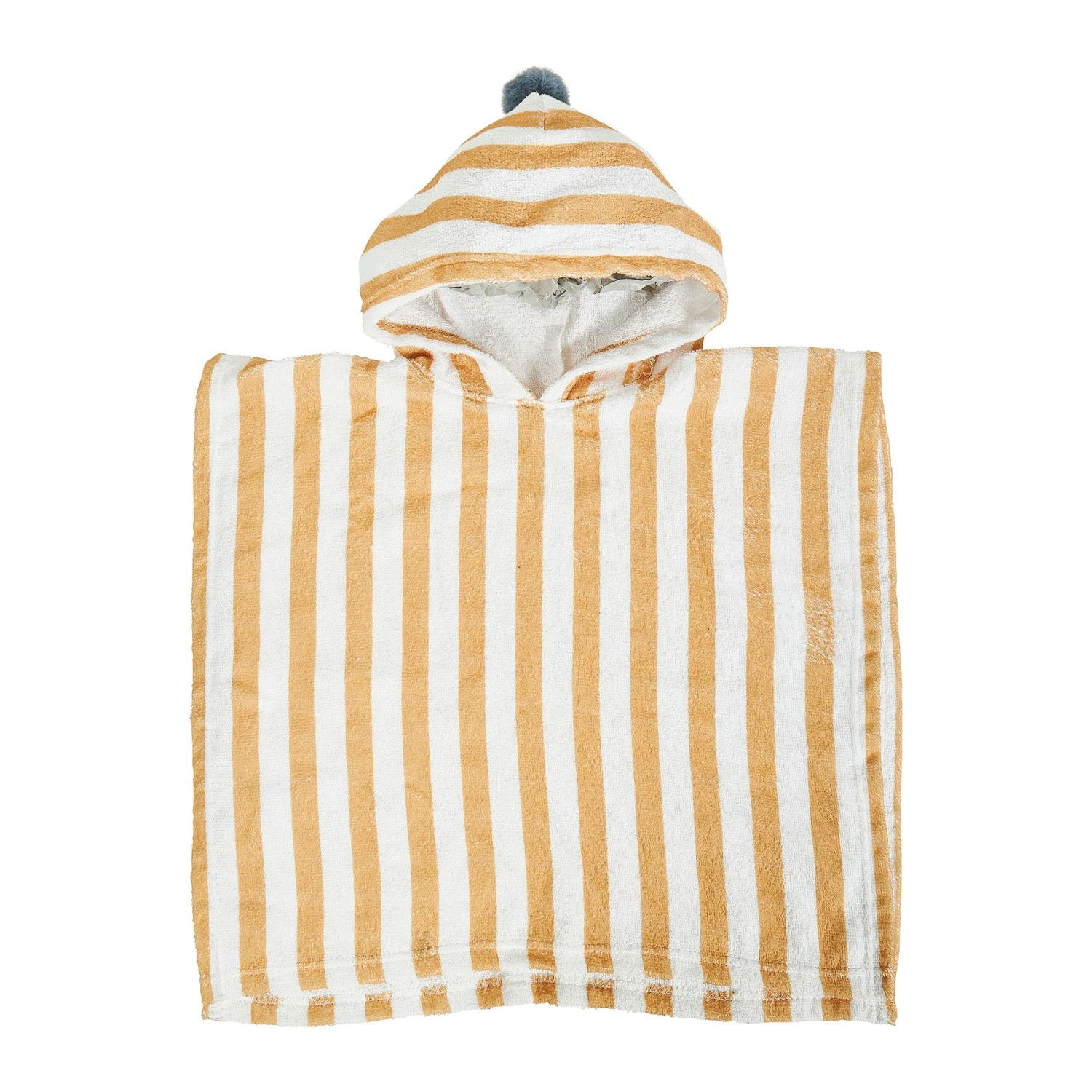 Ce poncho de bain en coton accompagne votre enfant à la sortie de la salle de bain.