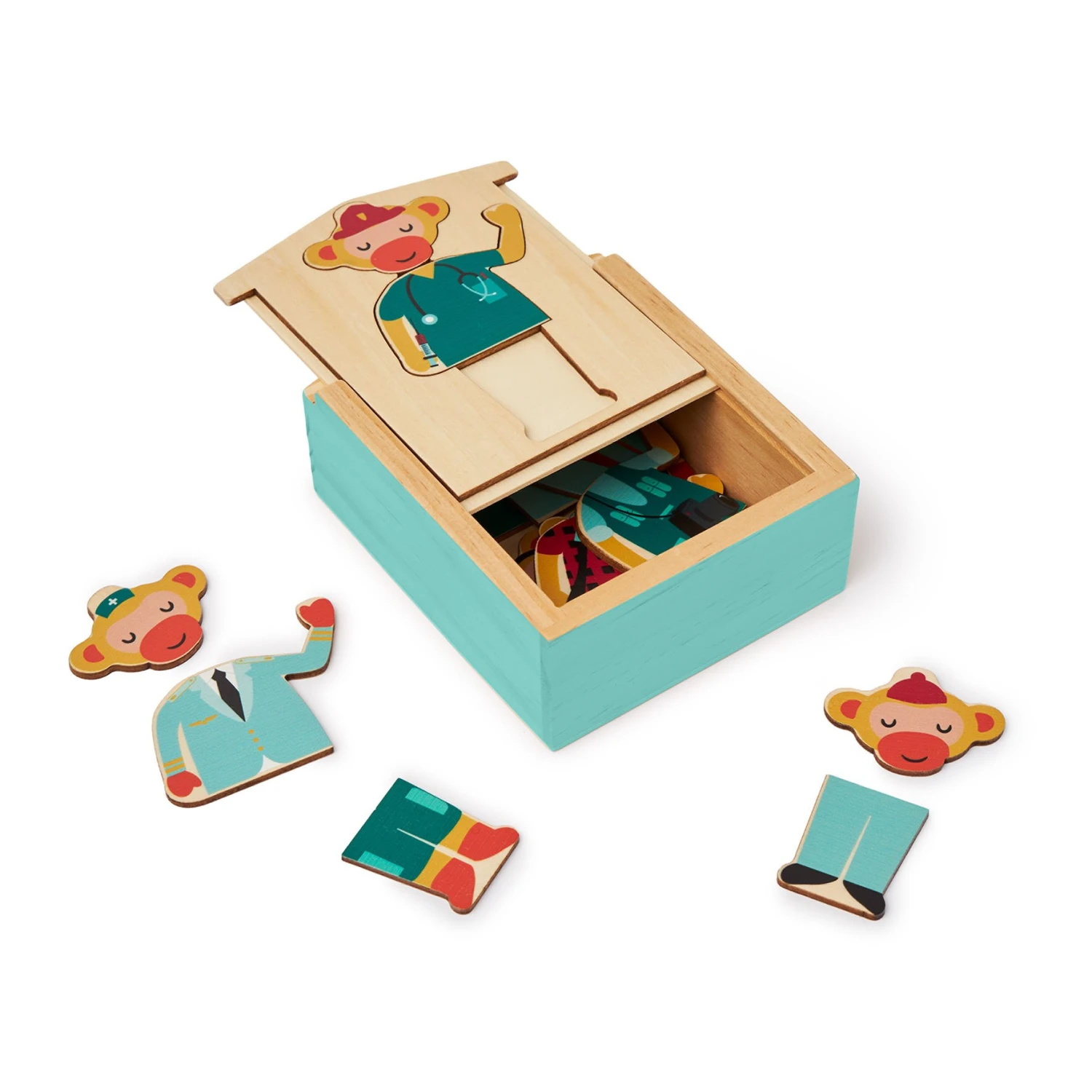 Le principe est simple : il suffit d’habiller le singe avec les vêtements en bois, plein de combinaisons sont possibles pour un maximum de fun !