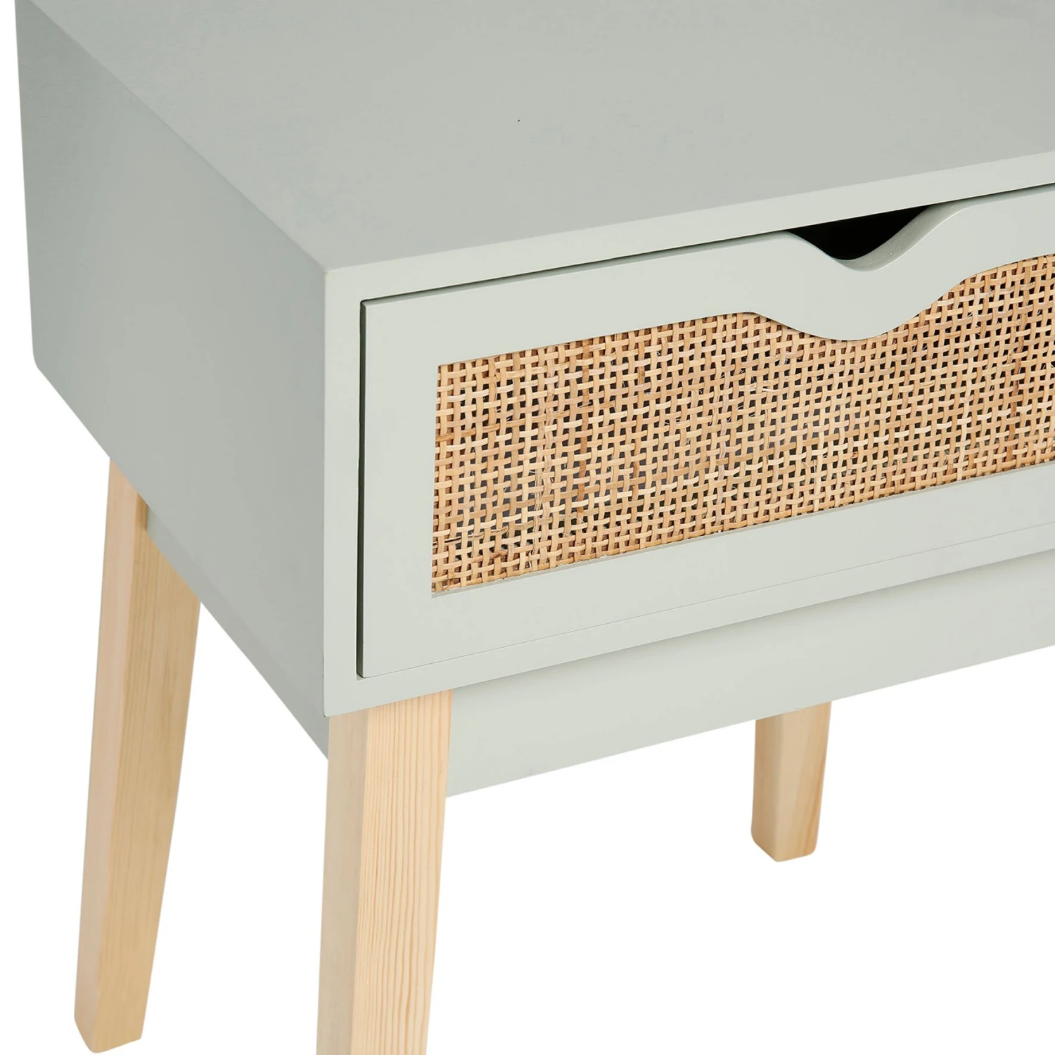 Cette table de chevet sera parfaite dans la chambre de votre enfant, avec sa couleur douce et son style frais.