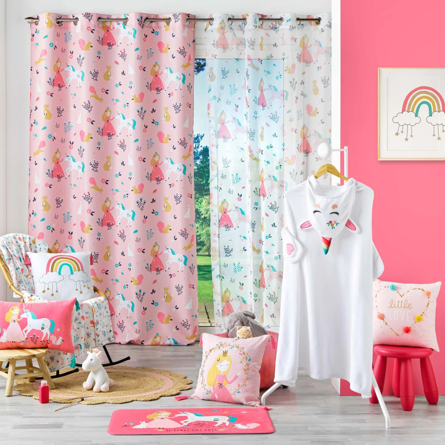 Imprimé : tapis à motifs princesse et licorne.