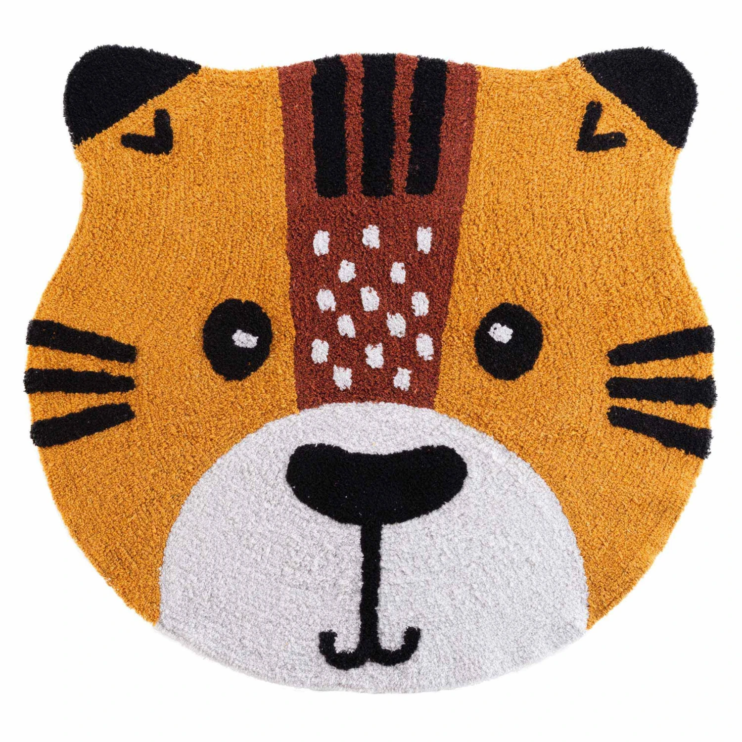 Imprimé : tapis en forme de tête de tigre.