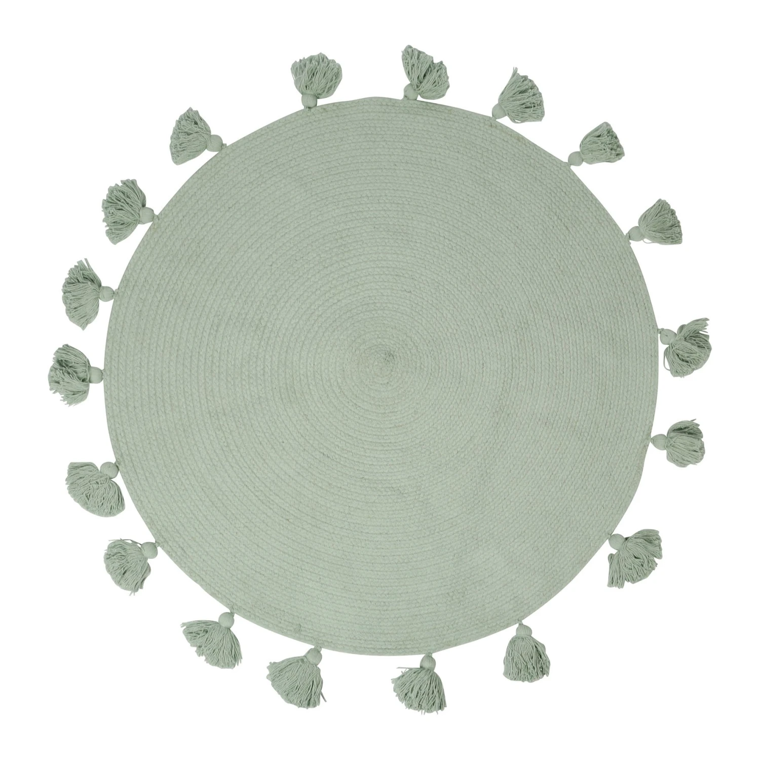 Finition : tapis rond à pompons.