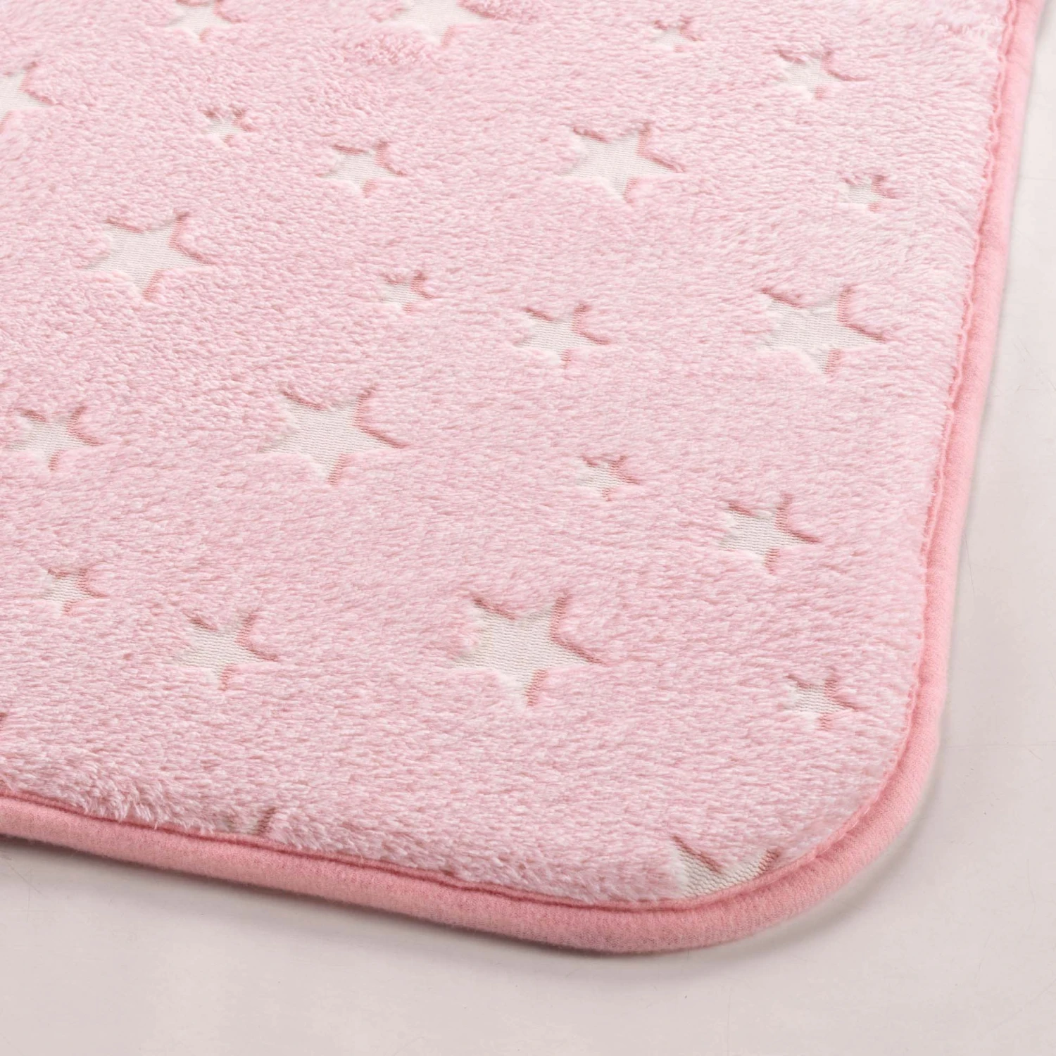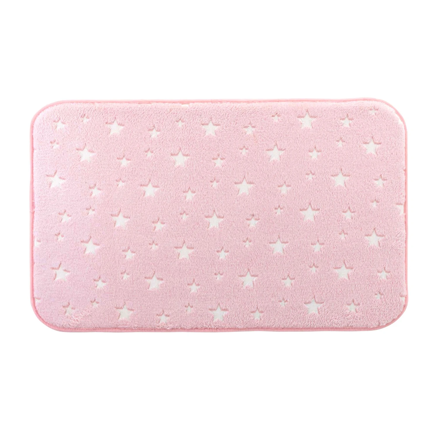 Adoptez ce tapis rose à motif étoiles phosphorescentes, pour illuminer la chambre de votre fille.