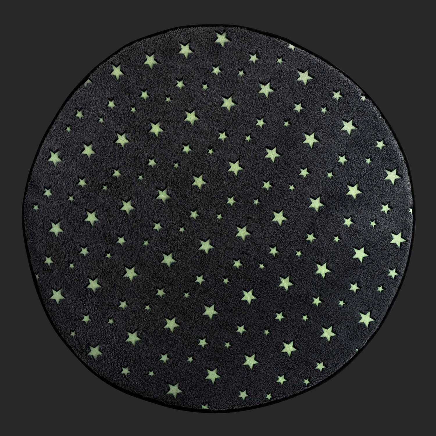 Ce tapis rond avec motif phosphorescent s’illumine quand vous éteignez la lumière.