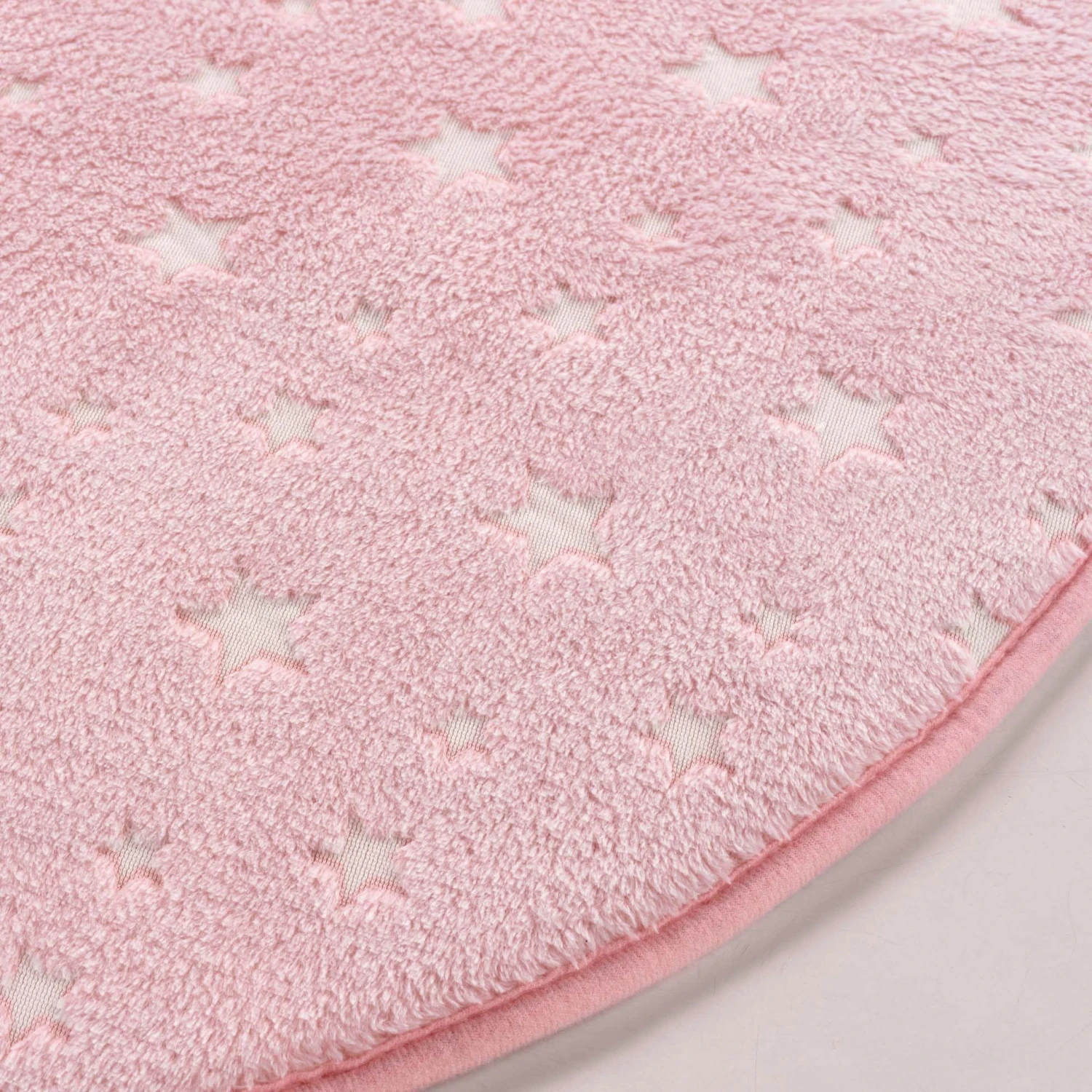 Un tapis rose et rond, qui fera le bonheur de votre petite fille.