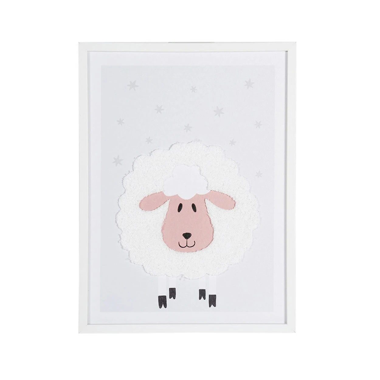 De la douceur dans la chambre de votre enfant avec cette belle toile murale à motif mouton tout doux.